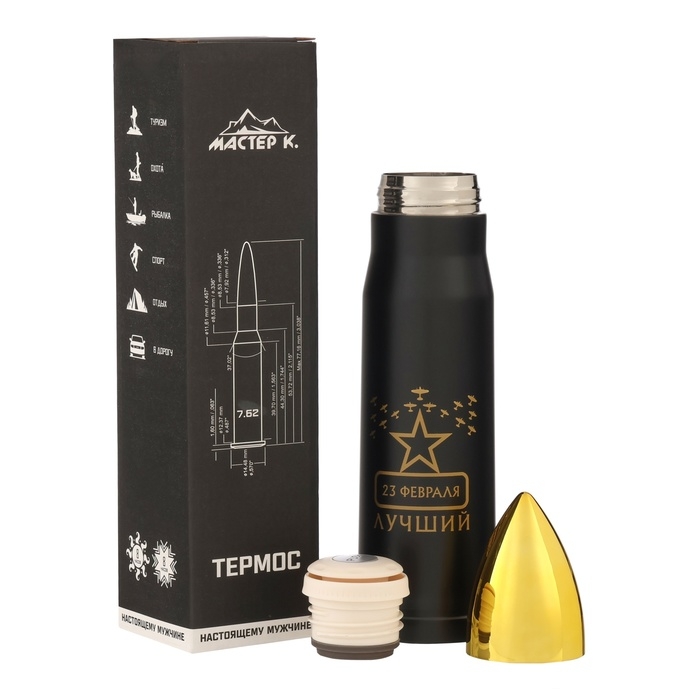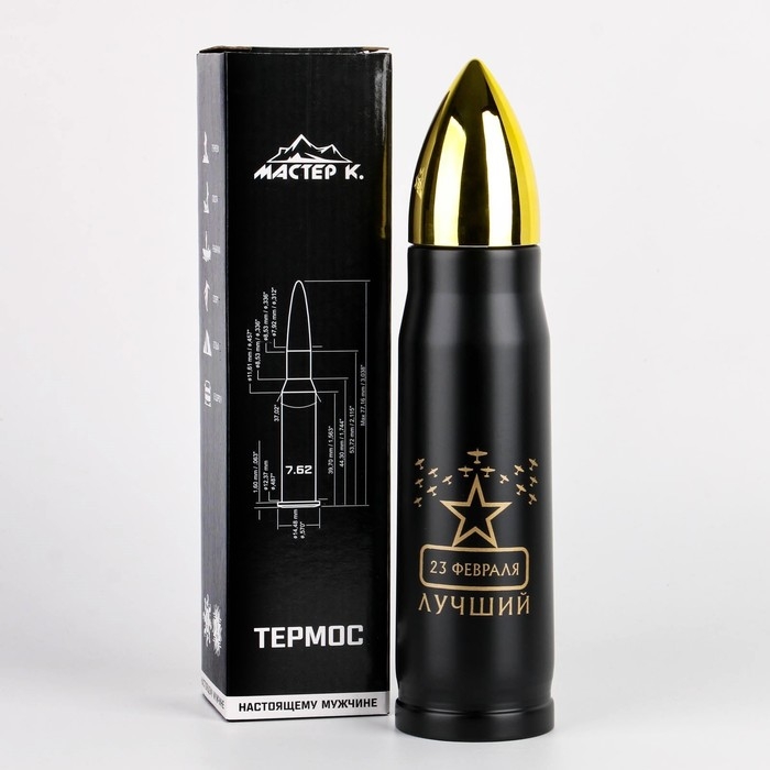 Термоc, 450 мл, Пуля "Мастер К. 23 февраля", сохраняет тепло 8 ч, 28 х 7 см