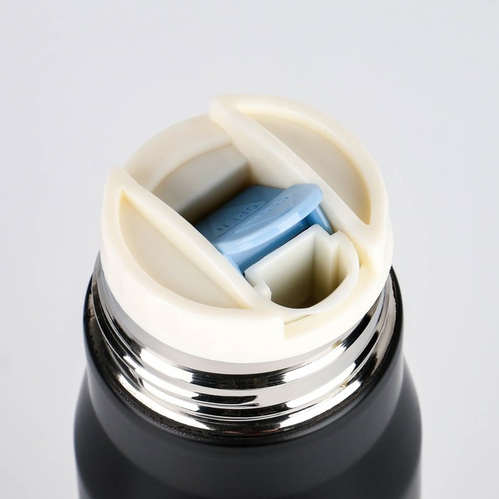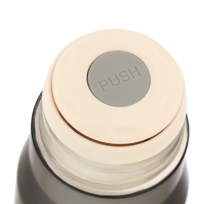 - Вакуумная крышка с кнопкой надежно удерживает жидкость внутри емкости.
