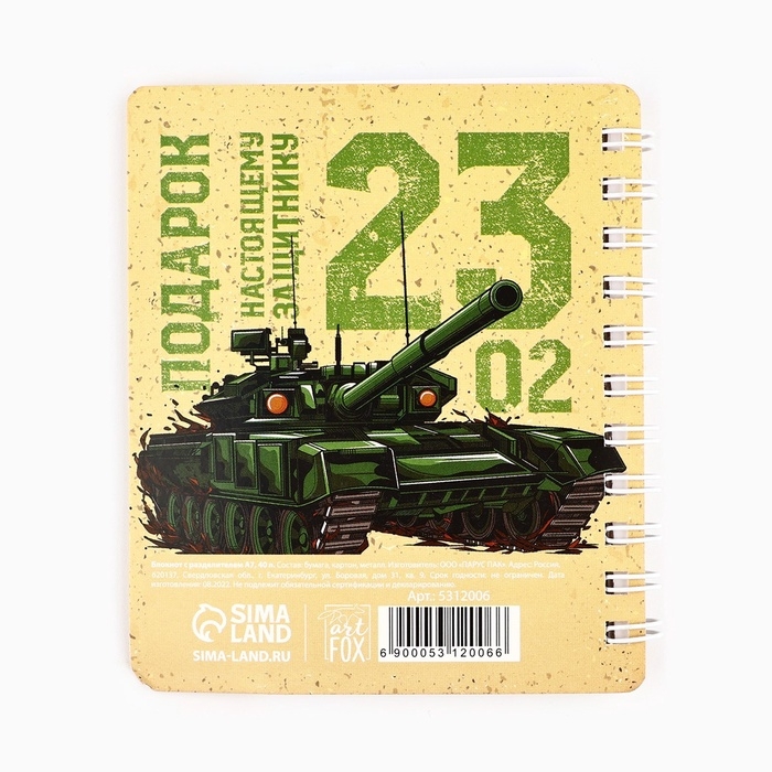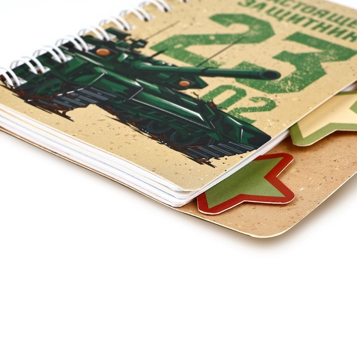 Блокнот А7, 40 листов с разделителями «23 февраля. Настоящему защитнику»