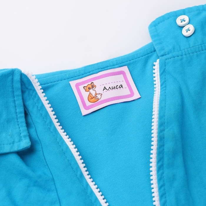 Бирки не линяют, выдерживают любую стирку. Вы просто пришиваете готовую метку в нужное место, пишете на ней имя ребёнка перманентным маркером или вышиваете нитками — и вещь сразу приобретает индивидуальность. Всем будет ясно, кто её владелец.