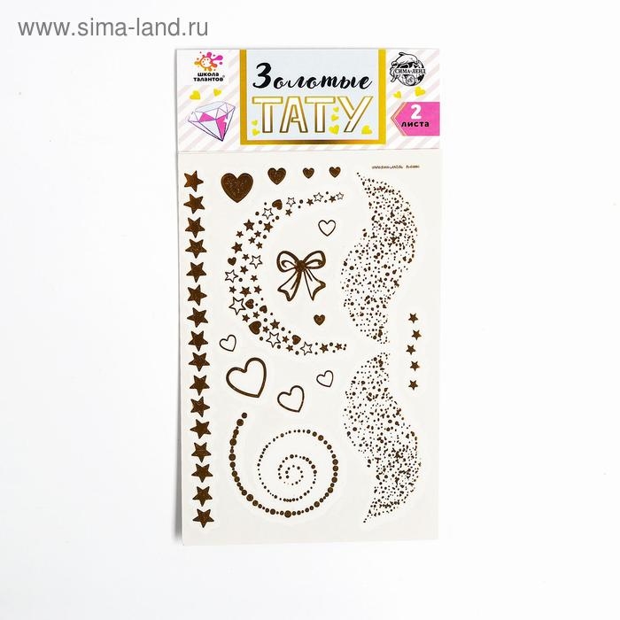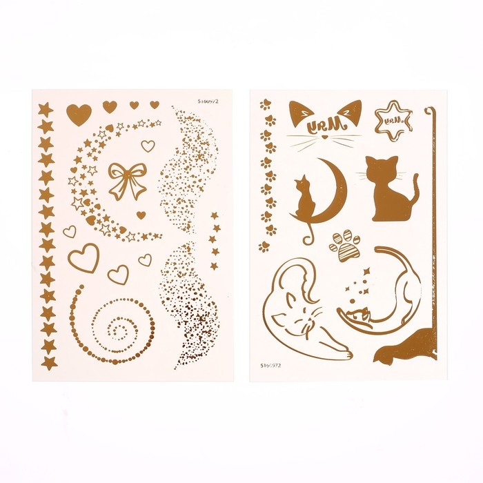 Детские татуировки-переводки, 10×15 см, набор 2 листа, золото, «Котики, сердца и звёзды»
