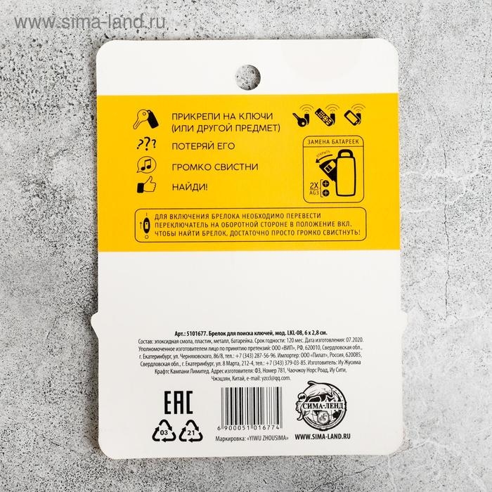 Как это работает: прикрепляете брелок к ключам, переводите переключатель на оборотной стороне в состояние «Вкл» – готово! Теперь, чтобы найти ключи с брелоком достаточно просто громко свистнуть – брелок реагирует на звук! Ваши ключи под надежной защитой!