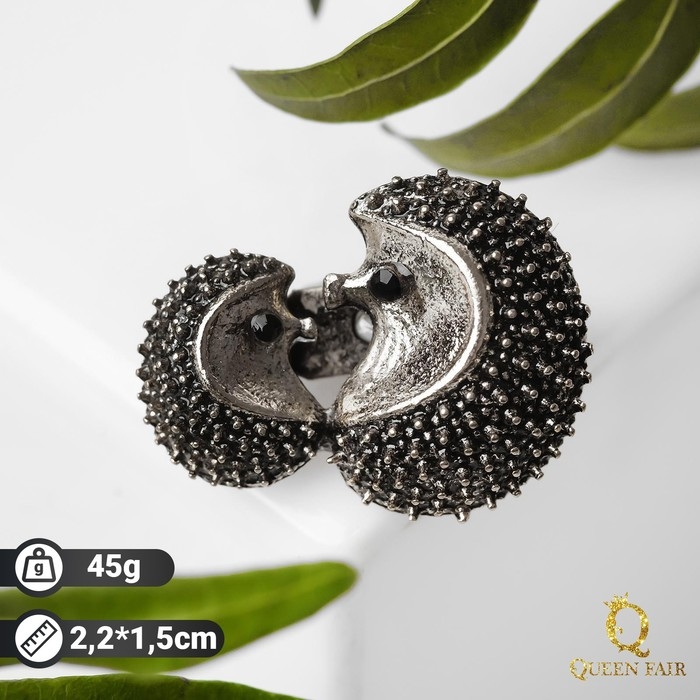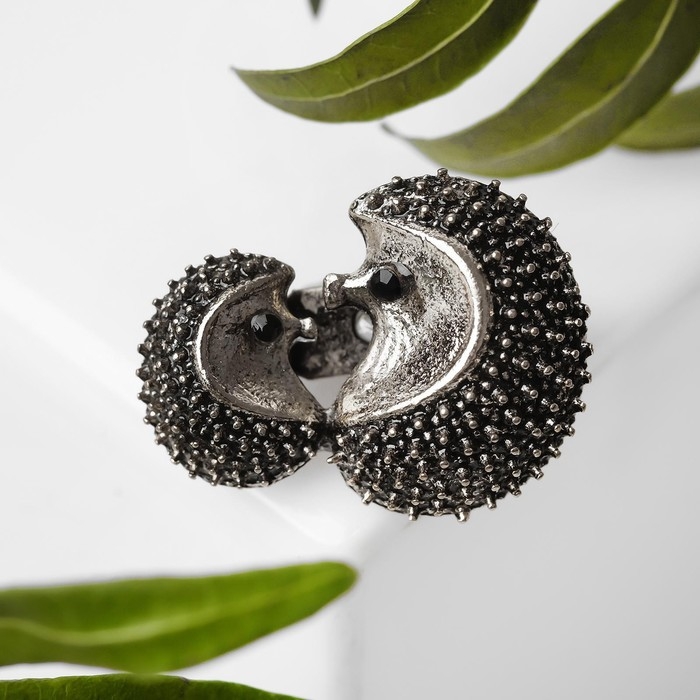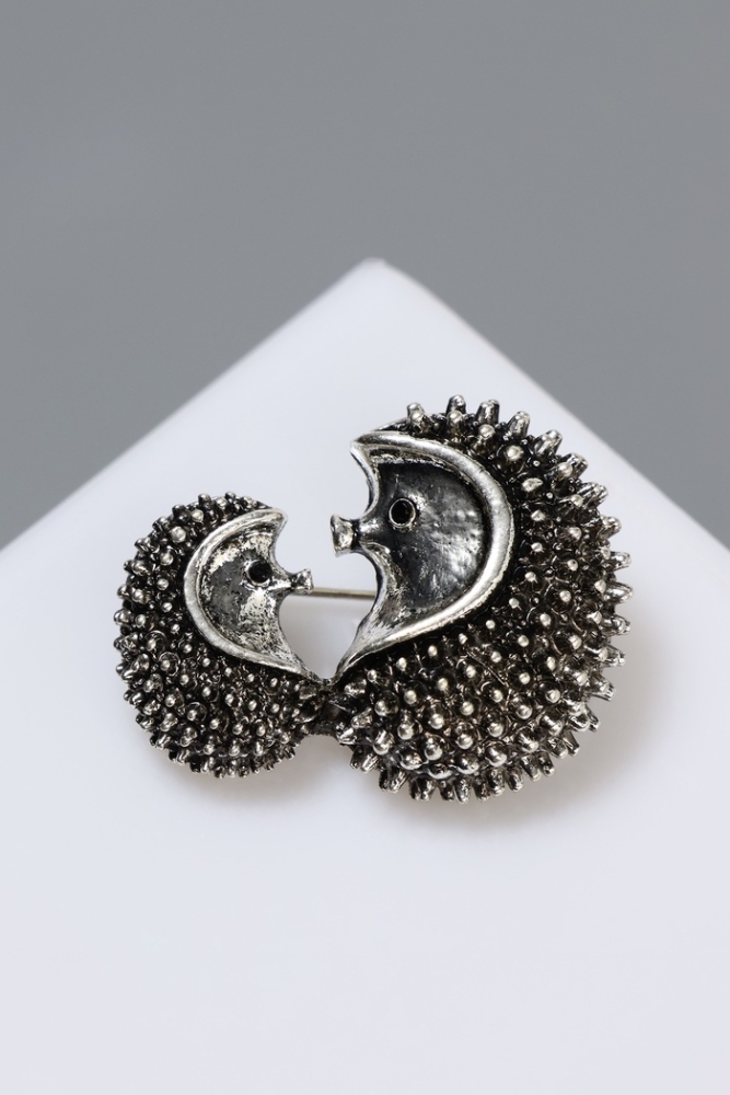 Брошь «Ёжики» мини, цвет чернёного серебра