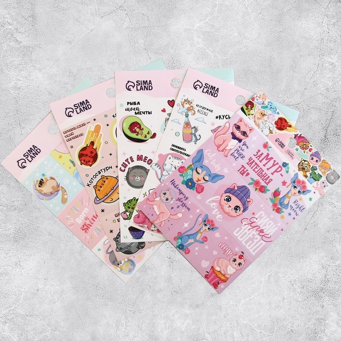 Наклейки детские бумажные, «Замурчательные истории», 11 х 15.5 см, 5 листов