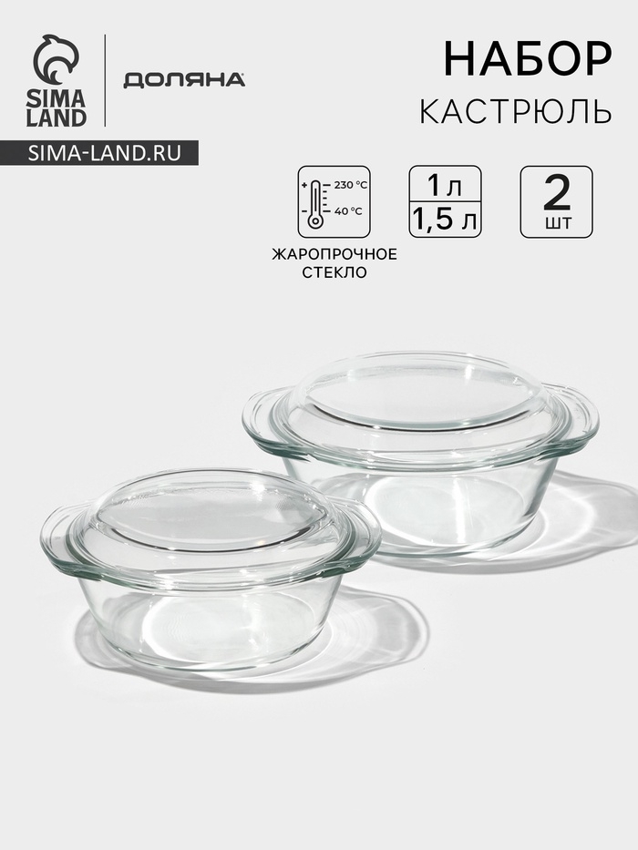 Набор кастрюль из жаропрочного стекла для запекания Доляна «Гратен», 2 предмета: 1 л, 1,5 л, с крышками