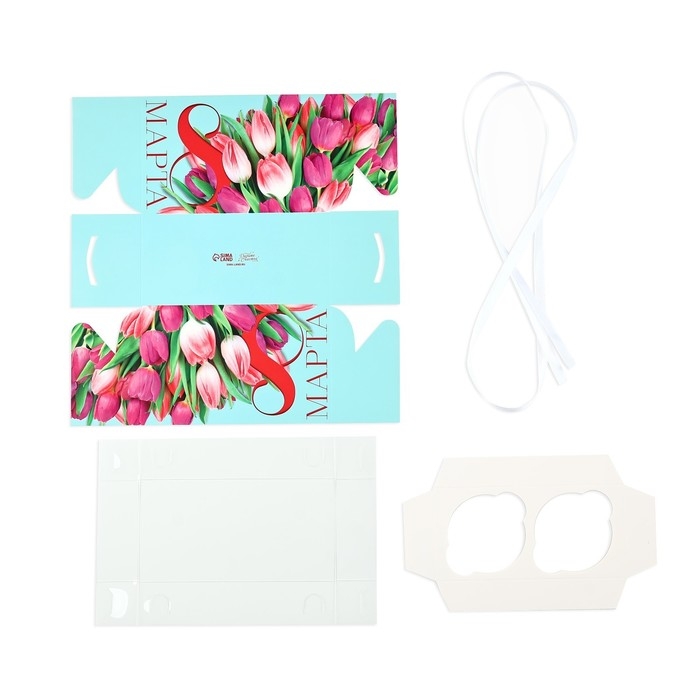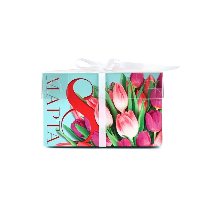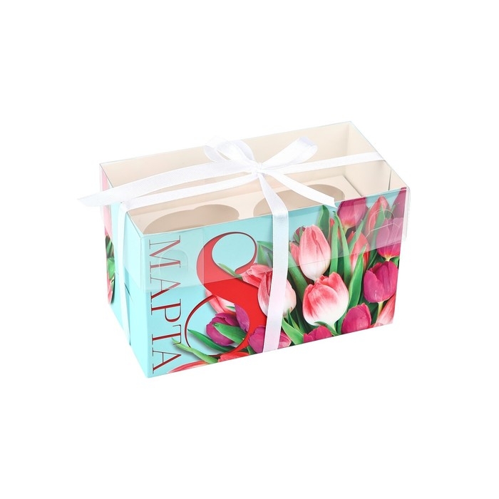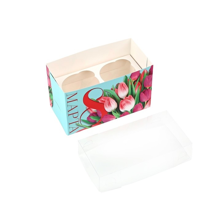 Коробка для капкейков, кондитерская упаковка, 2 ячейки «8 Марта», 16 х 8 х 10 см