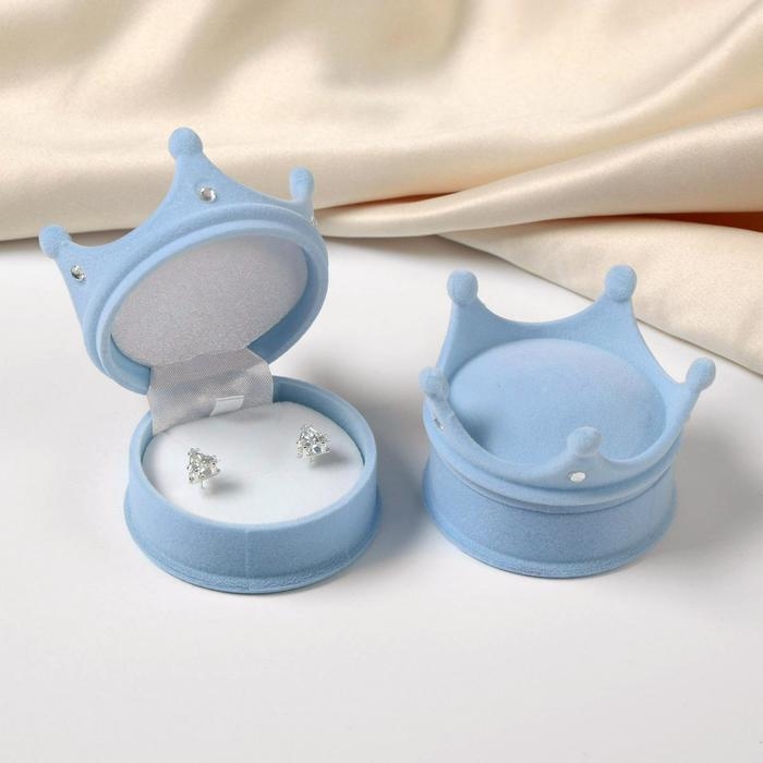 Футляр бархатный под серьги/кулон/кольцо «Корона» 5,5×5,5×4,5см, цвет голубой