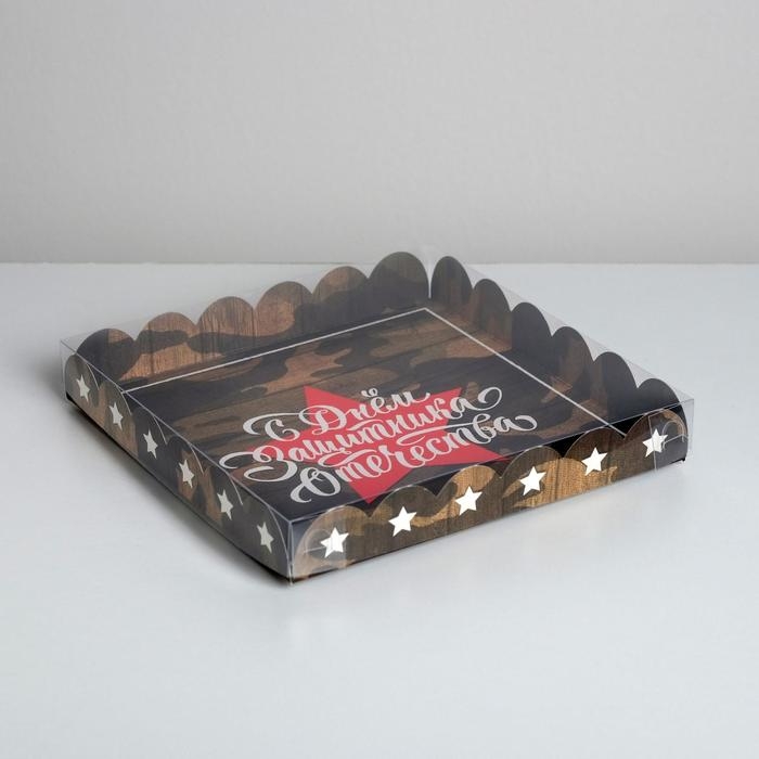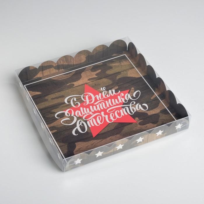Коробка для печенья, кондитерская упаковка с PVC крышкой, «23 февраля», 21 х 21 х 3 см