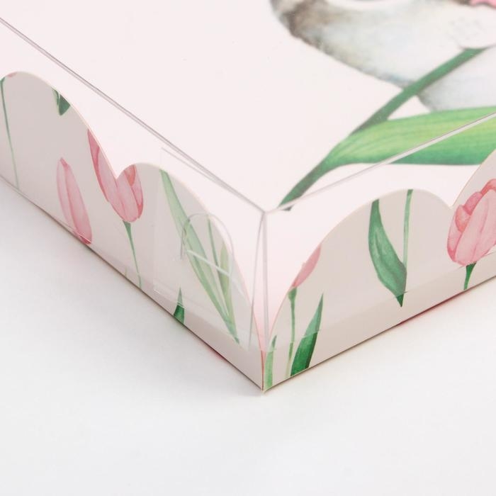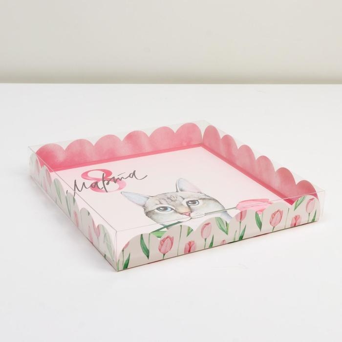 Коробка для печенья, кондитерская упаковка с PVC крышкой, «8 марта», 21 х 21 х 3 см