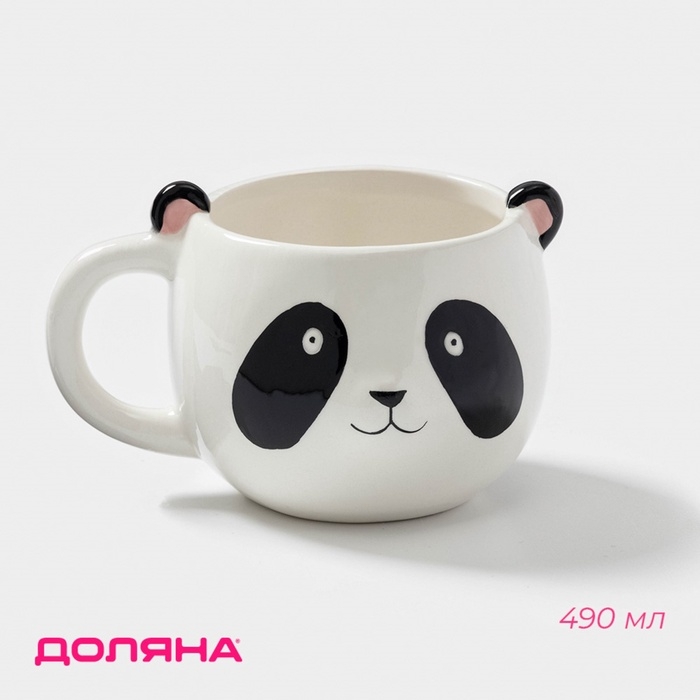 Кружка Доляна «Панда», 490 мл, доломит, белая