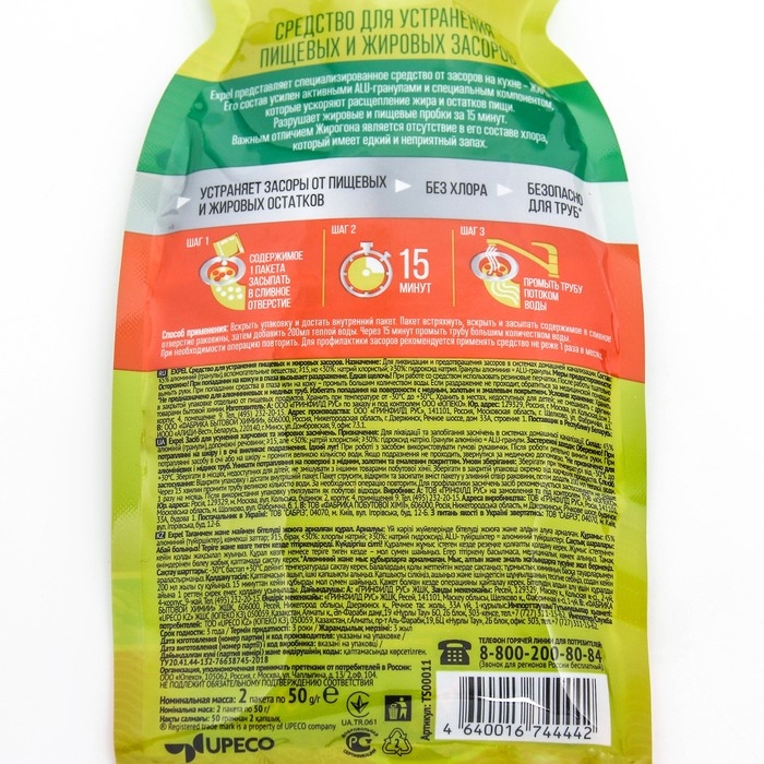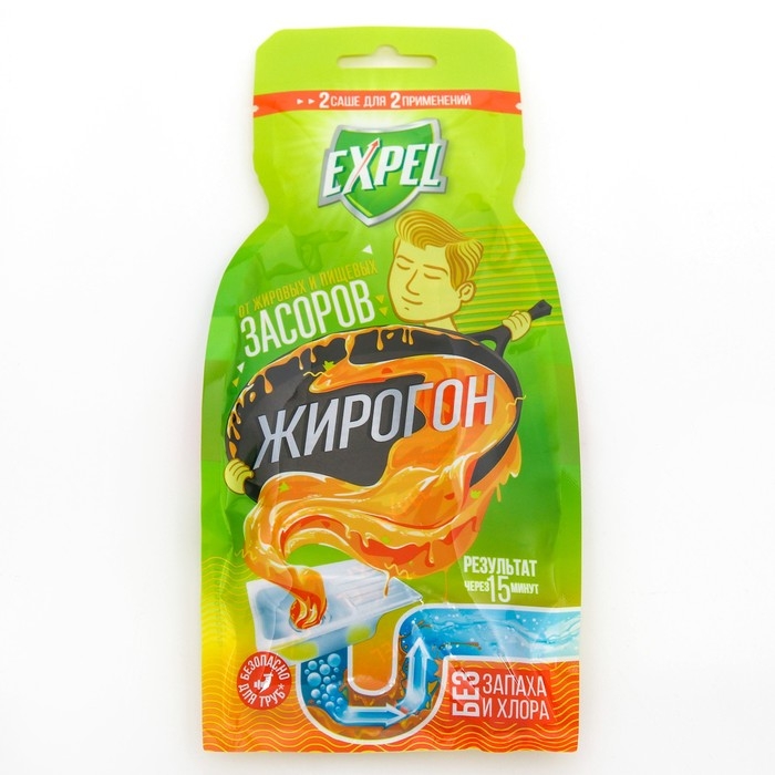 Средство для устранения засоров, EXPEL ЖИРОГОН, от жира и пищевых остатков 2 саше по 50г