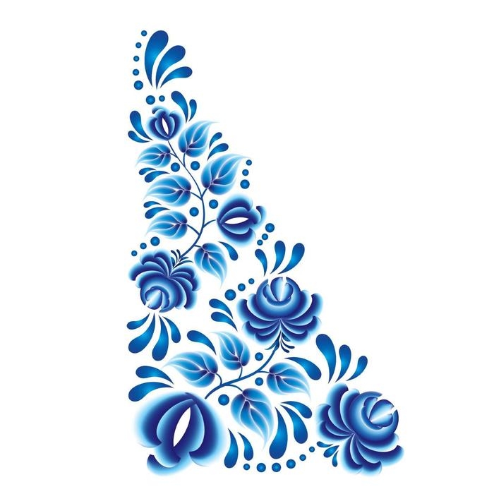 Термотрансфер «Гжель цветы», уголок справа, 20 х 35 см, набор 10 шт.