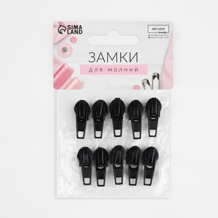 Бегунок автоматический для молнии «Трактор», №8, 10 шт, цвет чёрный