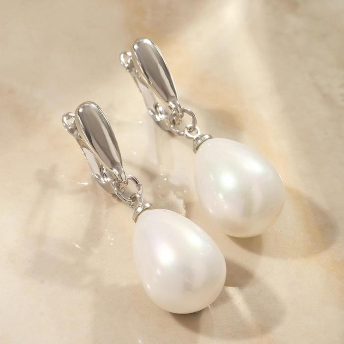 Серьги с жемчугом «Грейс» пухлая капля, цвет белый в серебре
