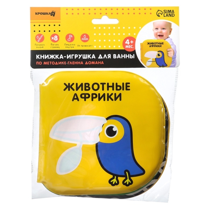 Книжка - игрушка для ванны Крошка Я «Животные Африки», водная раскраска, по методике Гленна Домана