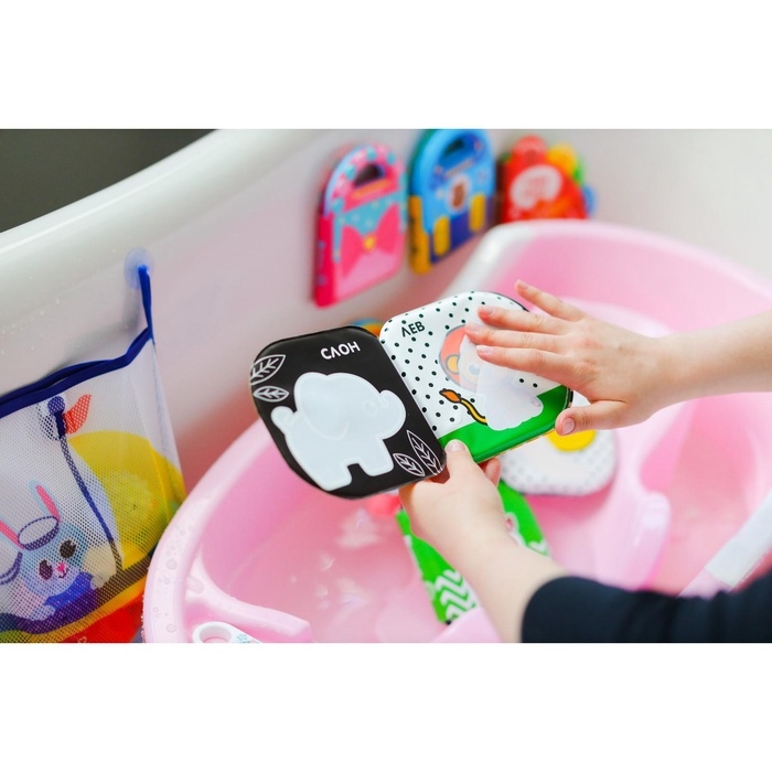 Красивая, яркая книжка предназначена для игры в ванной комнате, малышу будет очень весело разрисовывать книжку пальчиками, от контакта с водой книжка окрашивается разными цветами, после высыхания возвращается в первичное состояние. Изготовлена из безопасных материалов.