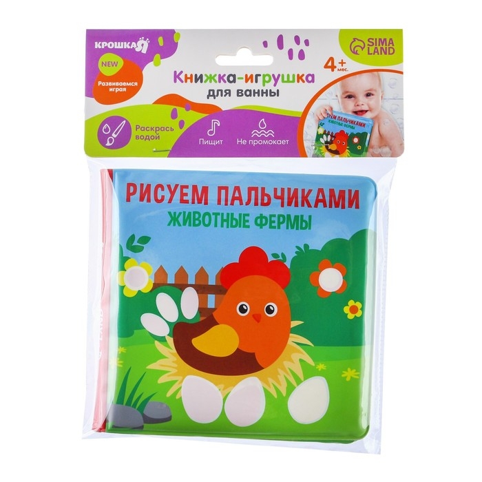 Книжка - игрушка для ванны Крошка Я «Рисуем пальчиками: животные фермы», водная раскраска