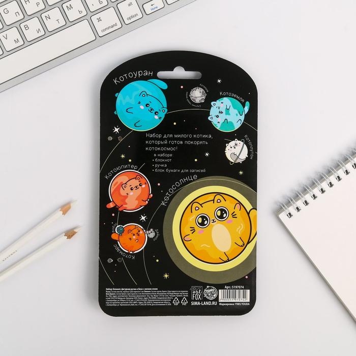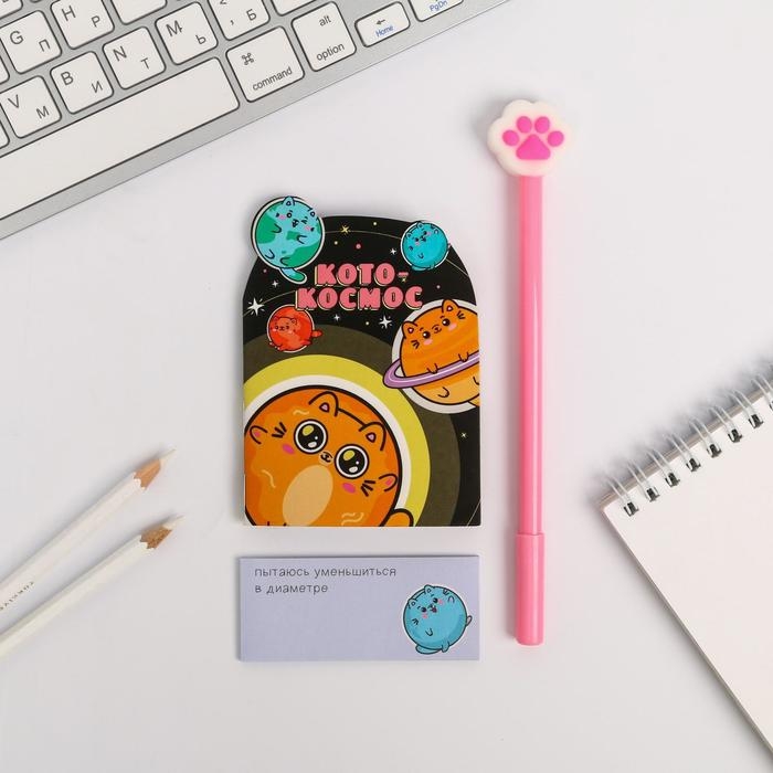 Подарочный набор «Мурчим в невесомости»: блокнот, ручка, блок с липким краем