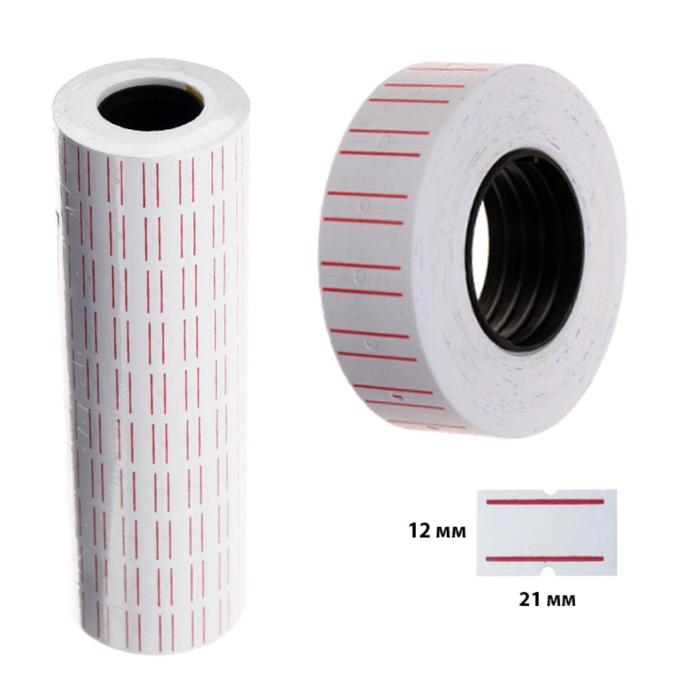 Этикет-лента 21*12мм, прямоугольная, белая с красной полосой, 1000 этикеток