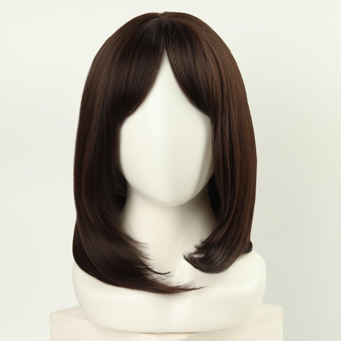 Парик искусственный, с чёлкой, имитация кожи, 30 см, цвет каштановый