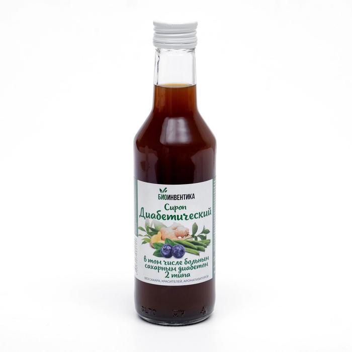Сироп диабетический - продукт разработан специалистами компании ООО «Биоинвентика» для больных диабетом 2 типа, профилактики диабета и использовании в комплексной терапии для лечения этого заболевания. Этот природный продукт на основе традиционно используемых для лечения СД экстрактов побегов черники, створок фасоли, горца птичьего, усилен введением в рецептуру корня имбиря и листьев зеленого чая, а также обогащен комплексом поливитаминов.