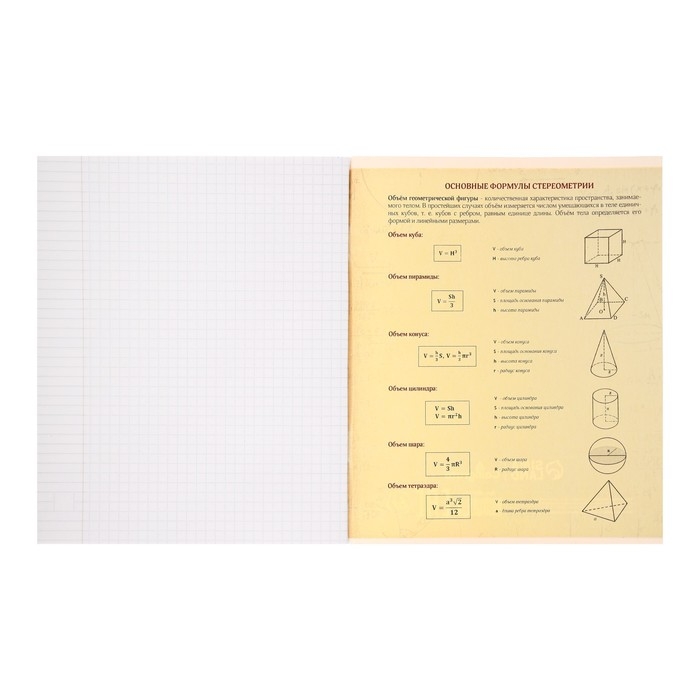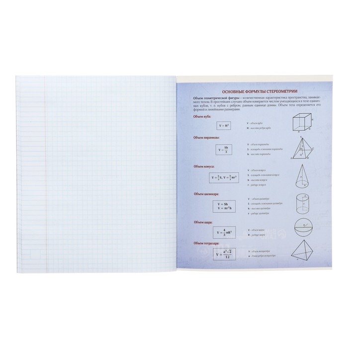 Тетрадь предметная Calligrata "Доска", 48 листов в клетку Геометрия, со справочным материалом, обложка мелованный картон, блок офсет