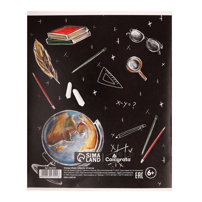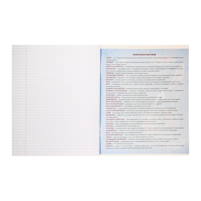 Тетрадь предметная Calligrata "Доска", 48 листов в клетку География, со справочным материалом, обложка мелованный картон, блок офсет