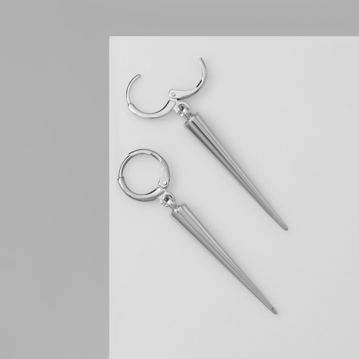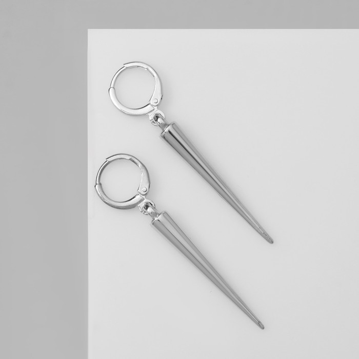 Серьги металл «Шипы» удлинённые, цвет серебро