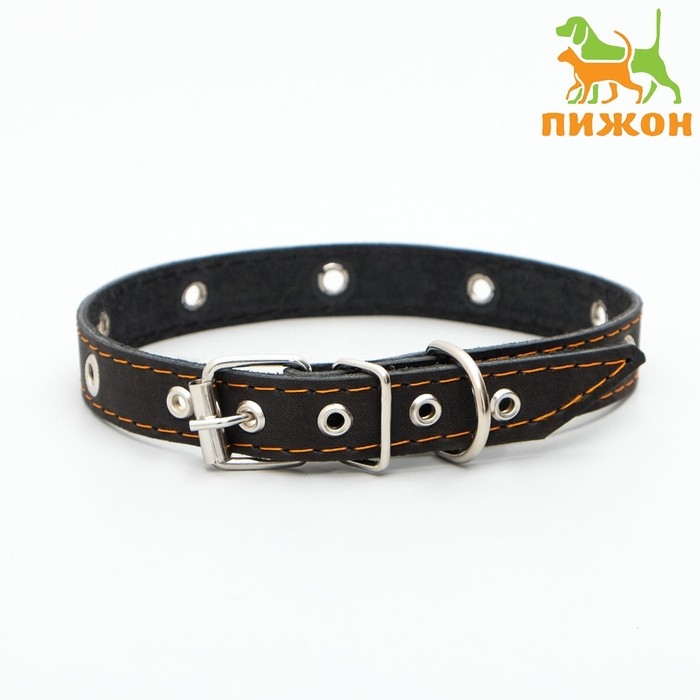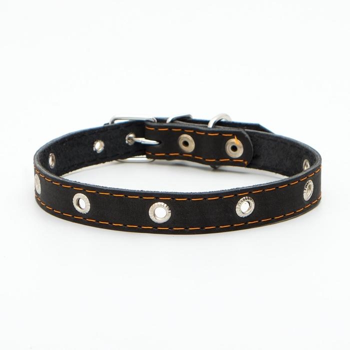 Ошейник кожаный однослойный с рифлеными люверсами, безразмерный, 50 х 2 см,ОШ 36-44 см,чёрный