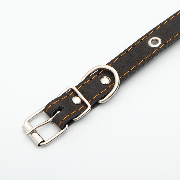 Ошейник кожаный однослойный безразмерный, 45 х 2 см, ОШ 18-39 см, чёрный