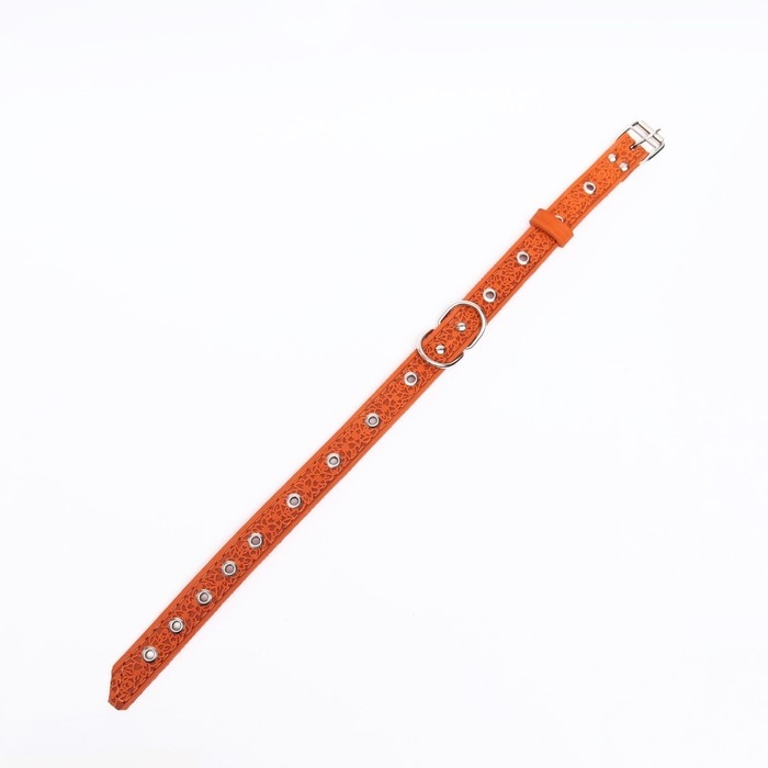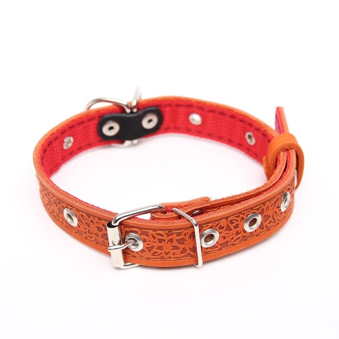 Ошейник кожаный усиленный капроном с полукольцом, 55 х 2,5 см, ОШ 27-53 см, рыжий