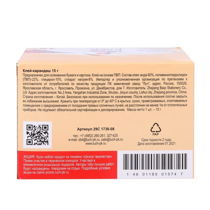 Клей-карандаш PVP 15 г Луч "Школа творчества"