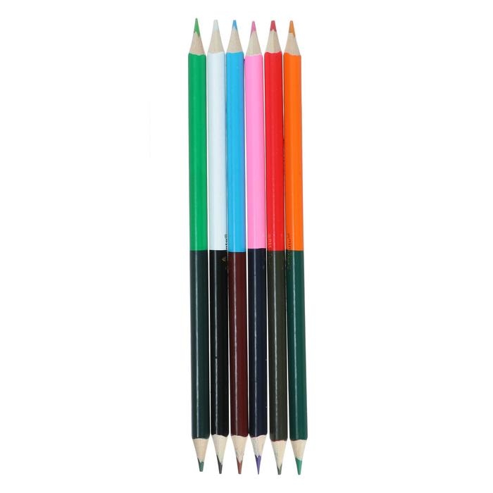 Карандаши двухцветные 12 цветов, 6 штук, корпус деревянный, треугольный, в картонной коробке