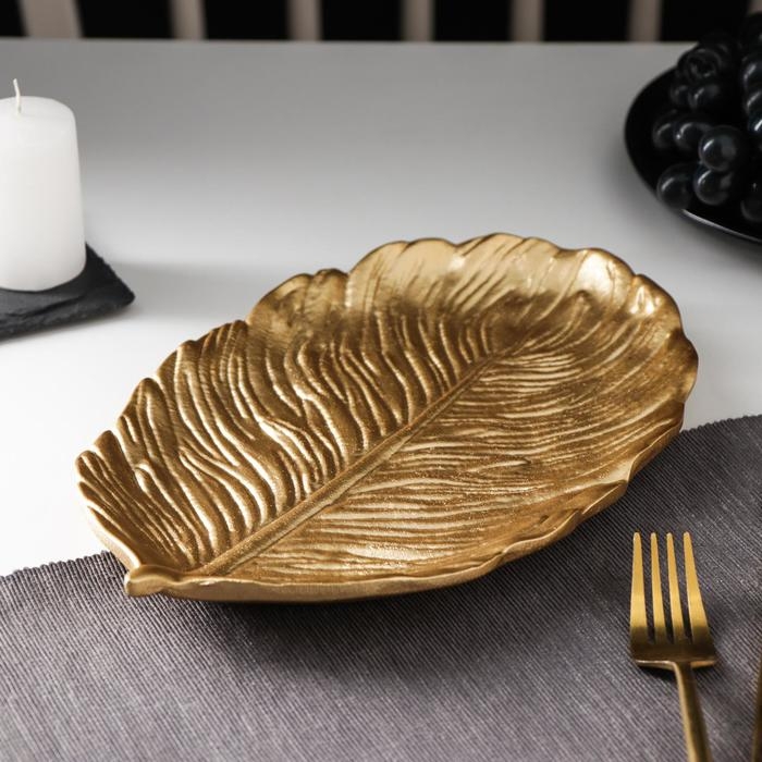 Блюдо для фруктов Доляна «Лист», 30×18×2 см, цвет золотой