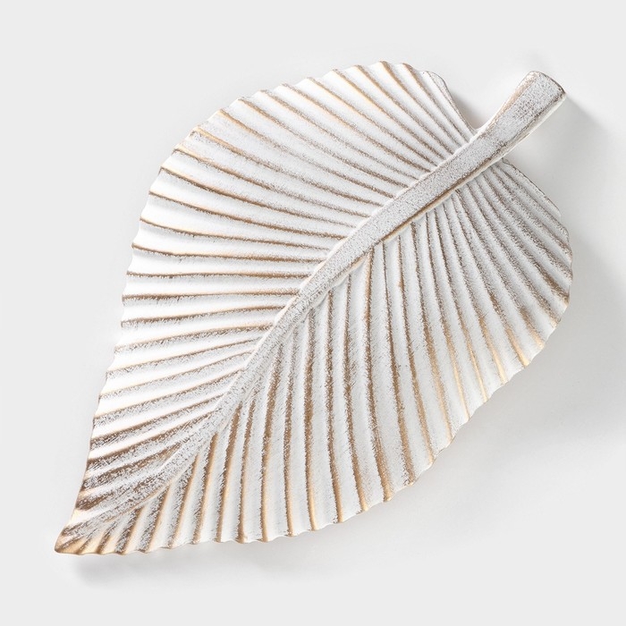 Блюдо для фруктов Доляна «Лист», 35,5×20×5 см, цвет золотой с белым