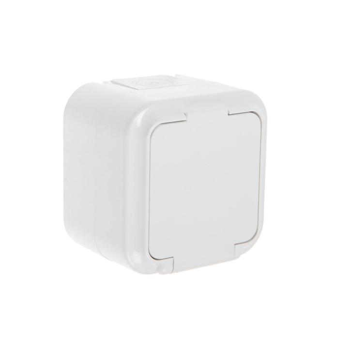Розетка BYLECTRICA РА16-297 АКВА, 16А, 250 В, одномест., наруж., с з/к, с крышкой, белая
