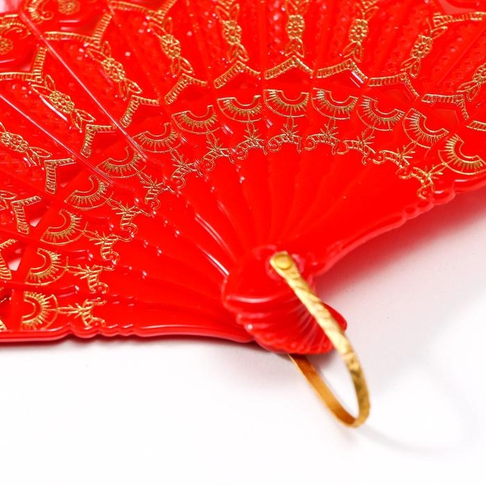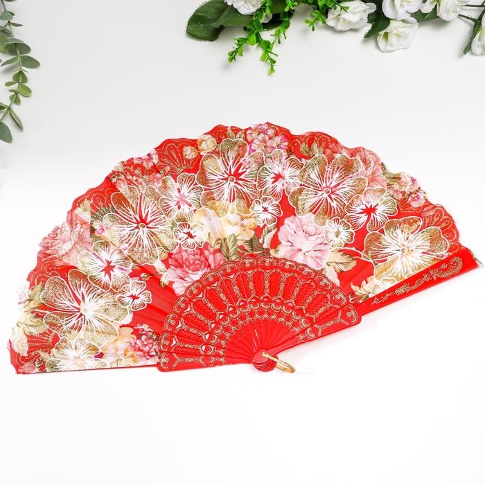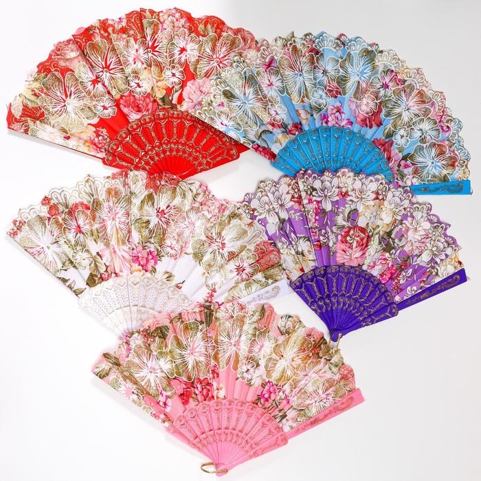 Веер пластик, текстиль "Цветочный рай" широкие лопасти, блёстки МИКС 23 см
