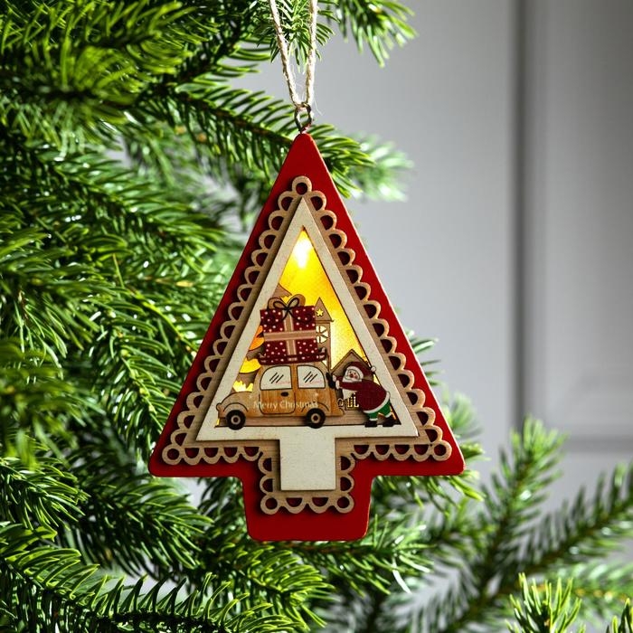 Ёлочная игрушка «Ёлка с Дедом Морозом и машиной», от батареек, свечение тёплое белое