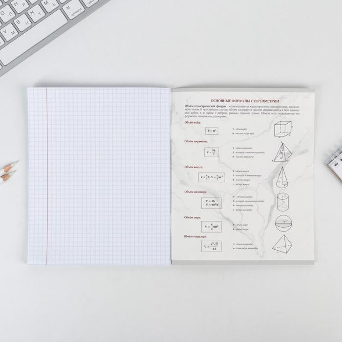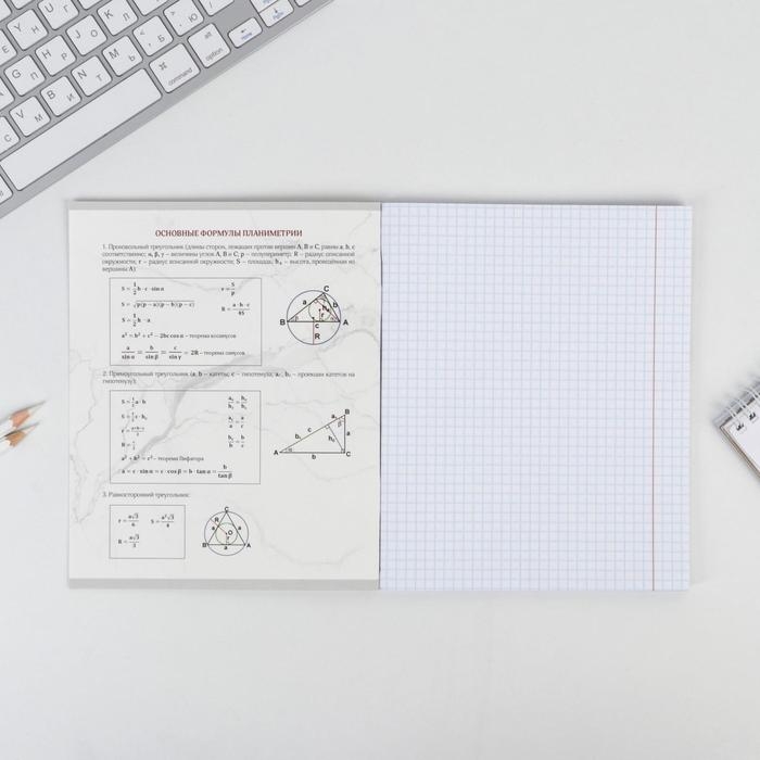 Тетрадь предметная 48 листов, А5, МРАМОР, со справ. мат. «1 сентября: Геометрия», обложка мелованный картон 230 гр внутренний блок в клетку белизна 96%