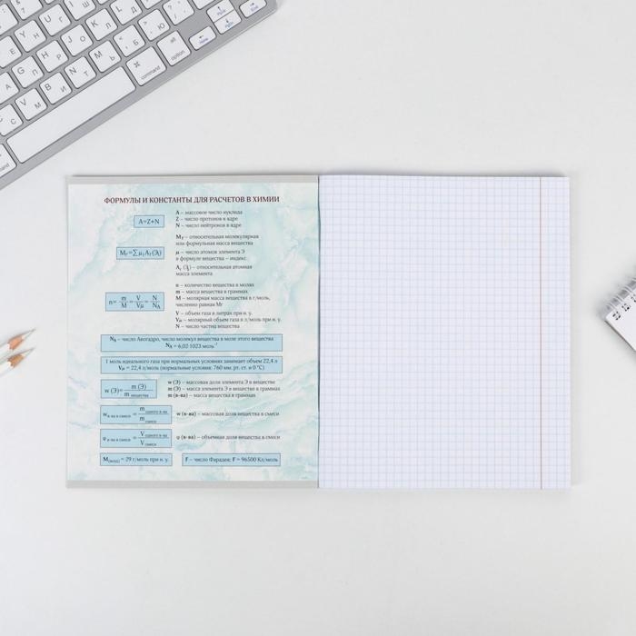 Тетрадь предметная 48 листов, А5, МРАМОР, со справ. мат. «1 сентября: Химия», обложка мелованный картон 230 гр внутренний блок в клетку белизна 96%