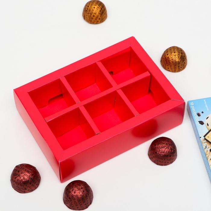 Коробка для конфет 6 шт, алый, 13,7 х 9,85 х 3,86 см