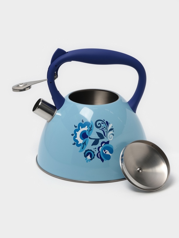 Чайник со свистком из нержавеющей стали Доляна «Свиристель», 3 л, цвет голубой
