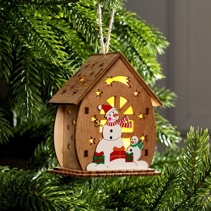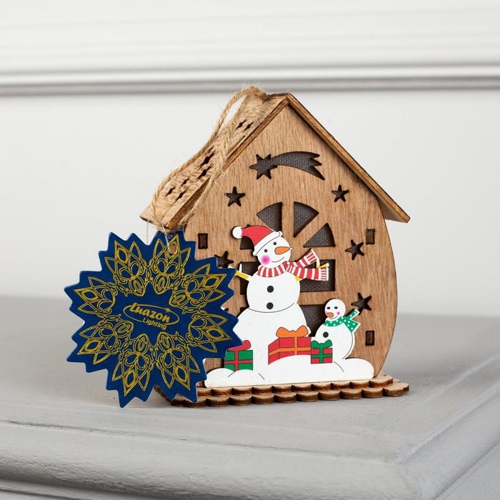 Ёлочная игрушка «Домик со снеговиком», от батареек, свечение тёплое белое
