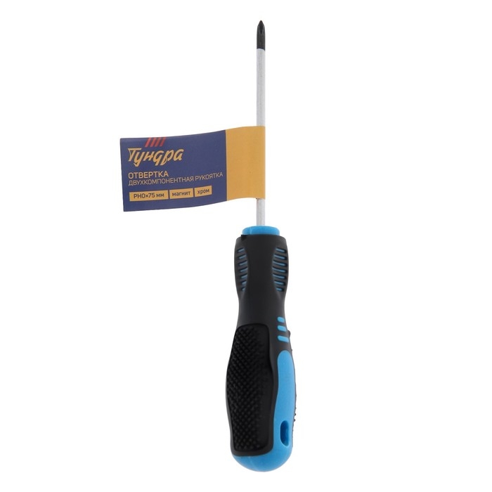 Отвертка крестовая ТУНДРА, CrV, хром, магнит, двухкомпонентная рукоятка, PH0 х 75 мм
