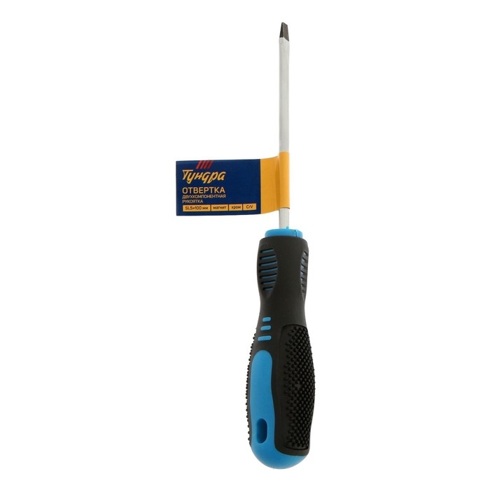 Отвертка шлицевая ТУНДРА, CrV, хром, магнит, двухкомпонентная рукоятка, SL5 х 100 мм