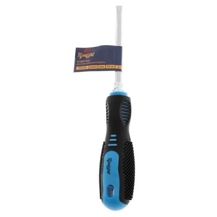 Отвертка комбинированная ТУНДРА, 2 в 1, хром, магнит, 2К рукоятка, PH2/SL6 х 100 мм