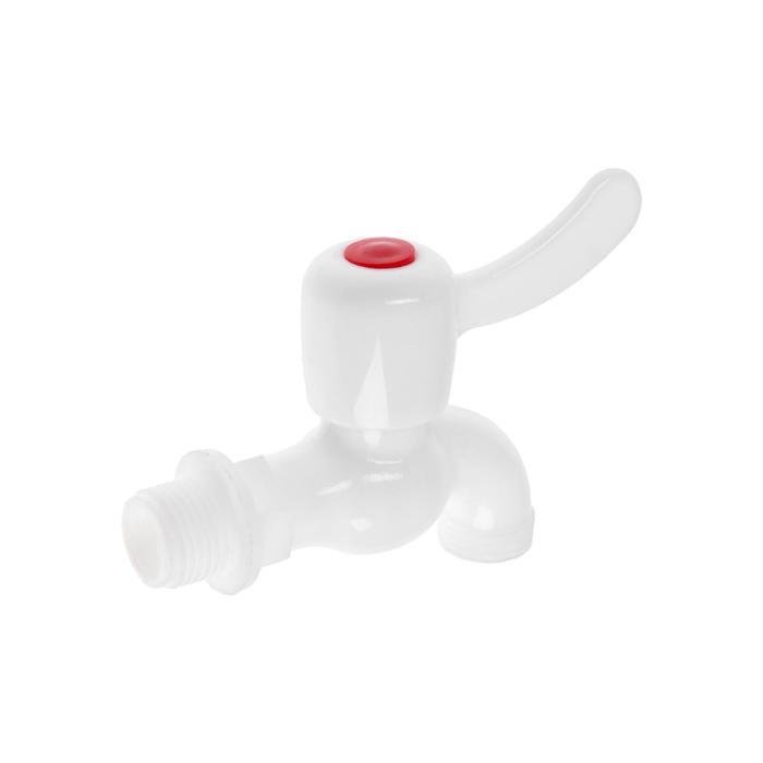Кран водоразборный ZEIN, 1/2", с плоской ручкой, PP, шаровой механизм,белый