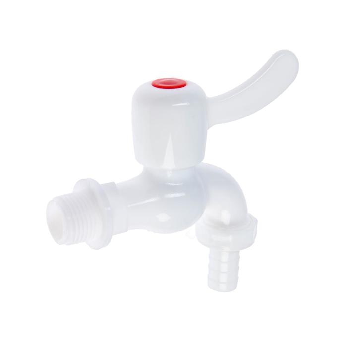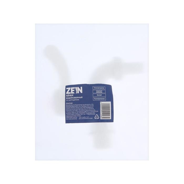 Кран водоразборный со штуцером ZEIN Z2188, 1/2", плоская ручка, PP, шаровой механизм,белый