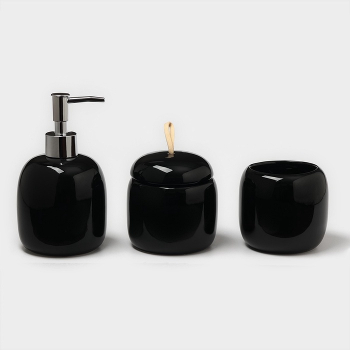 Набор аксессуаров для ванной комнаты SAVANNA Monro, 4 предмета (мыльница, дозатор для мыла 450 мл, стакан, баночка), цвет чёрный