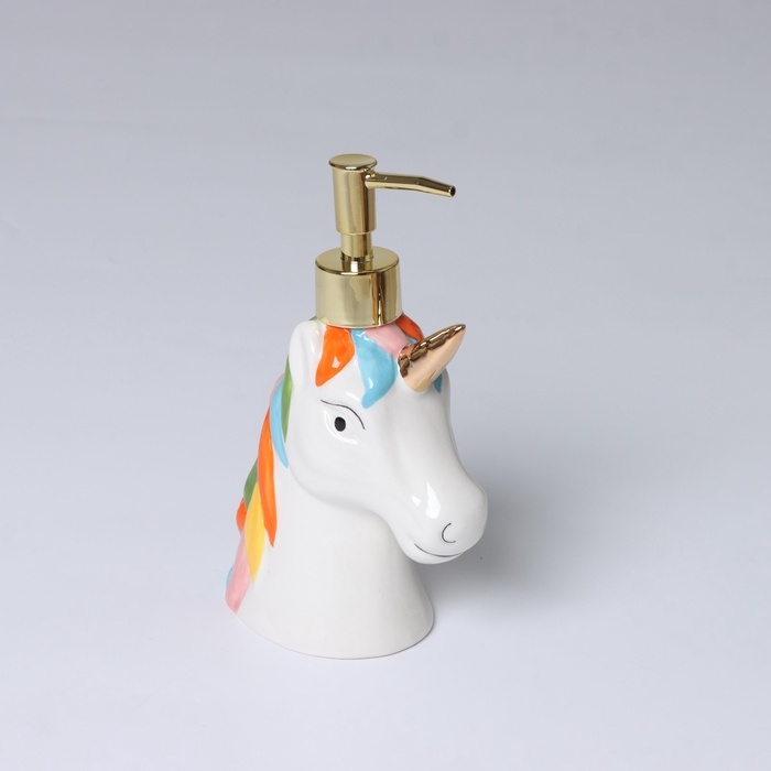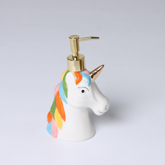 Керамический дозатор для жидкого мыла «Единорог» станет стильным дополнением вашей ванной комнаты или кухни. Такой аксессуар очень удобен в использовании. Просто перелейте жидкое мыло или моющее средство в диспенсер, а когда понадобиться, выдавите необходимое количество лёгким нажатием на помпу дозатора.